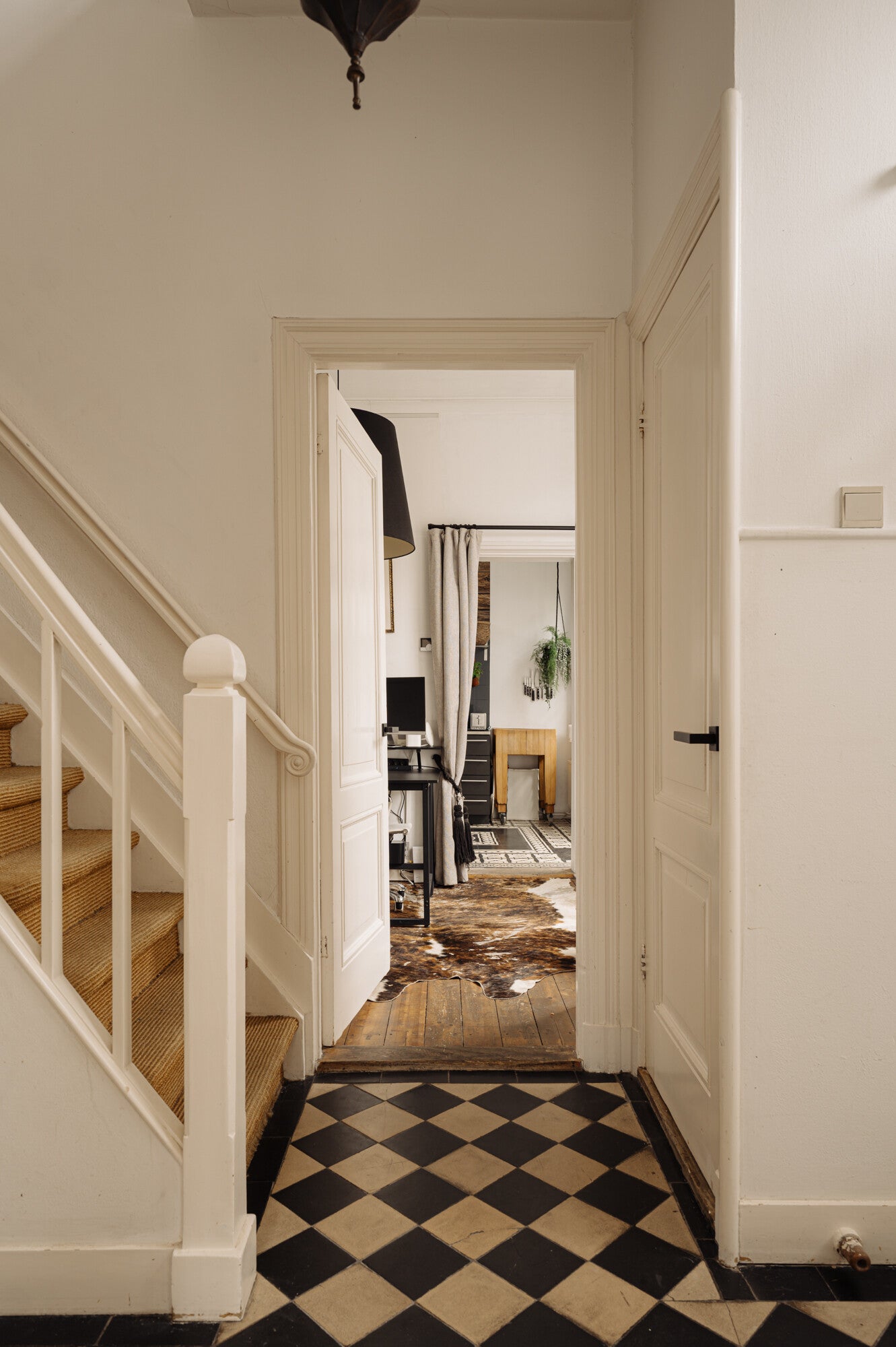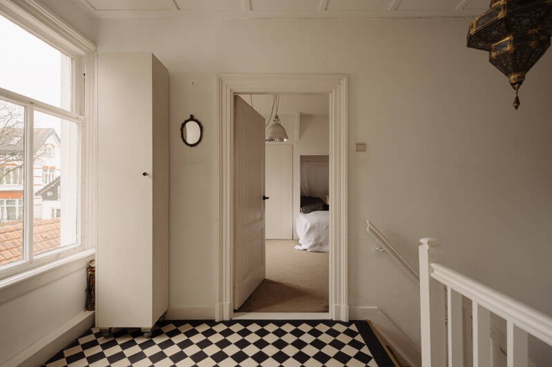 Op de eerste verdieping geeft de overloop toegang tot twee goed bemeten slaapkamers. Op de overloop bevindt zich een authentieke ronde kast: een charmant en praktisch detail.