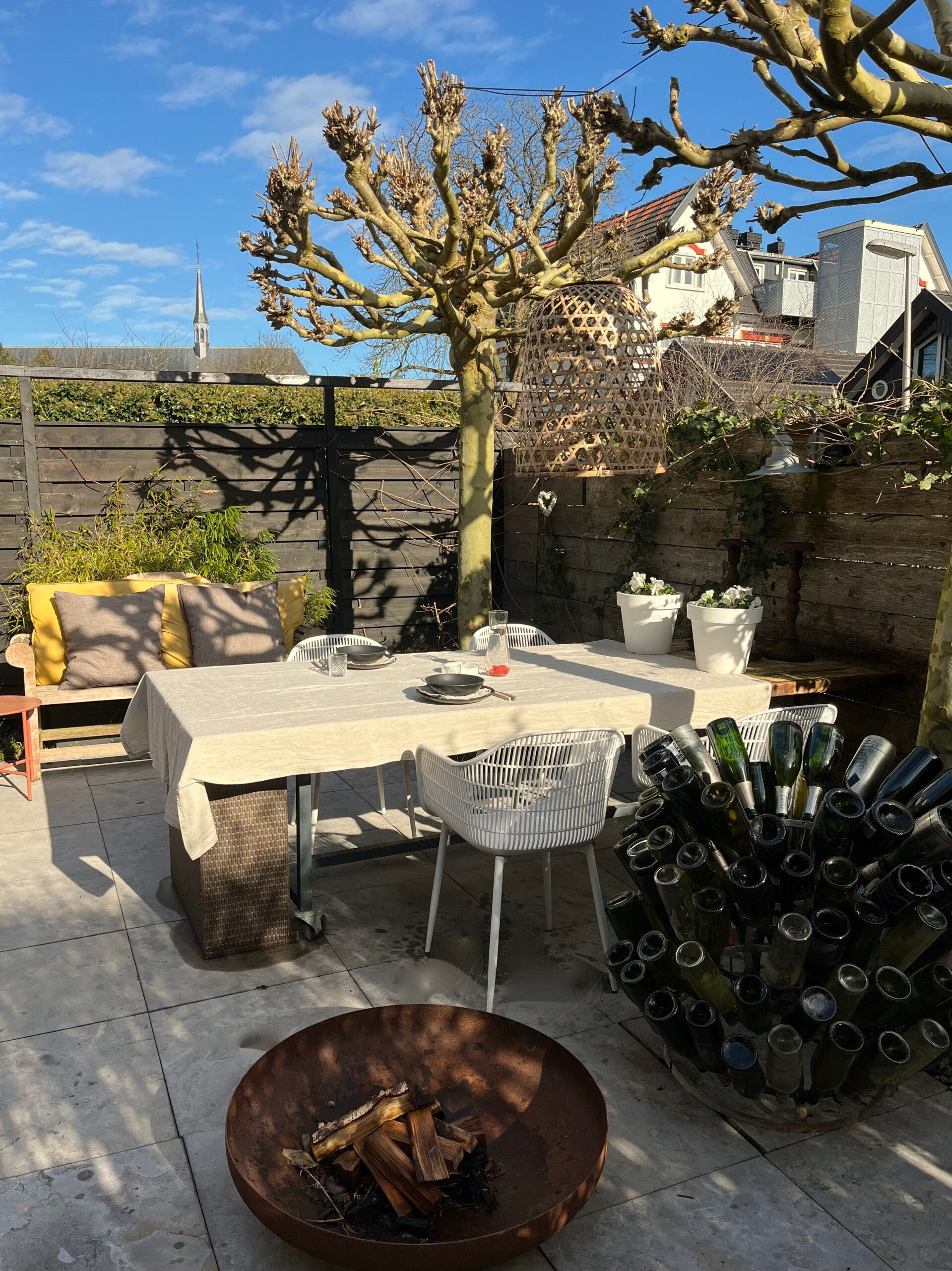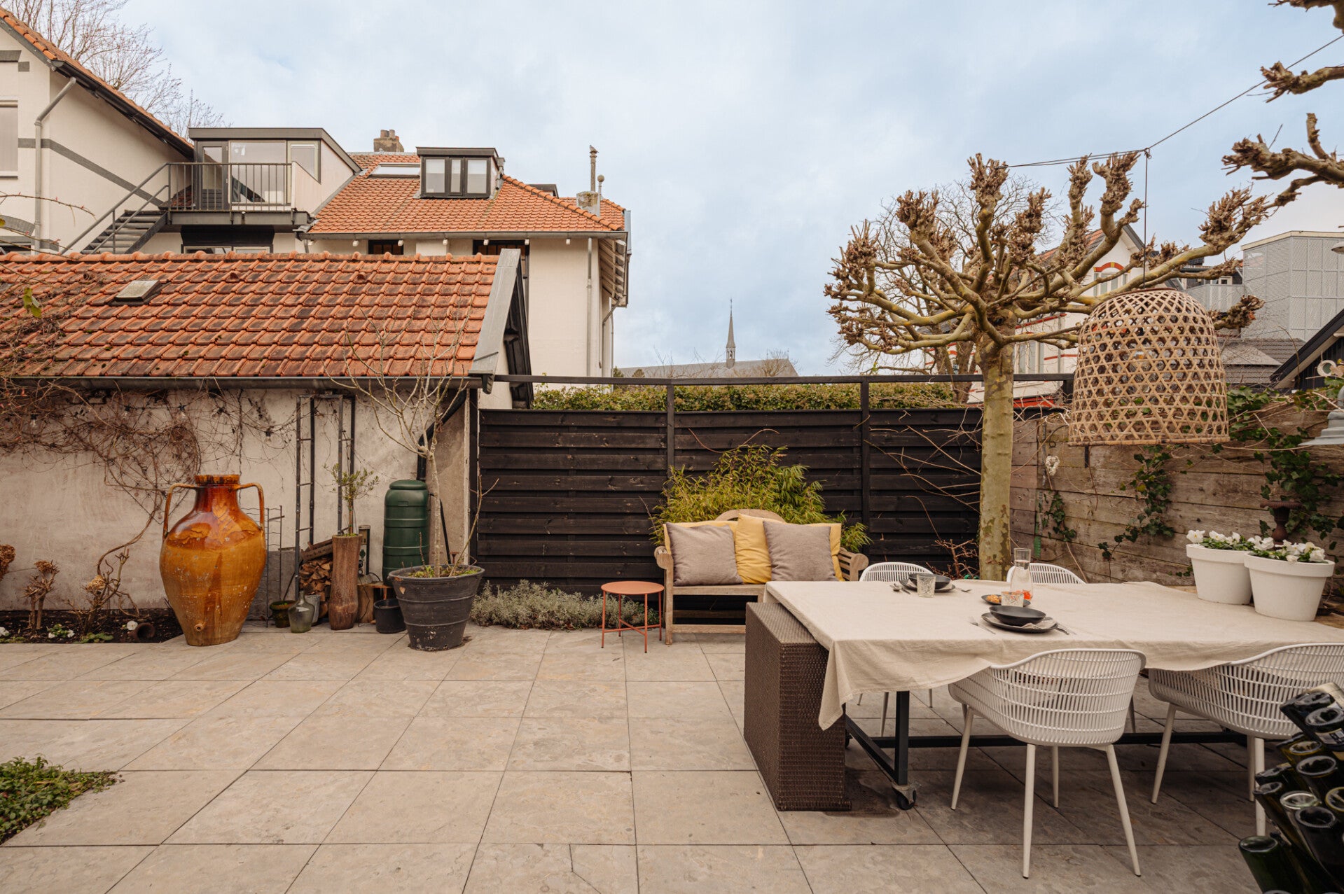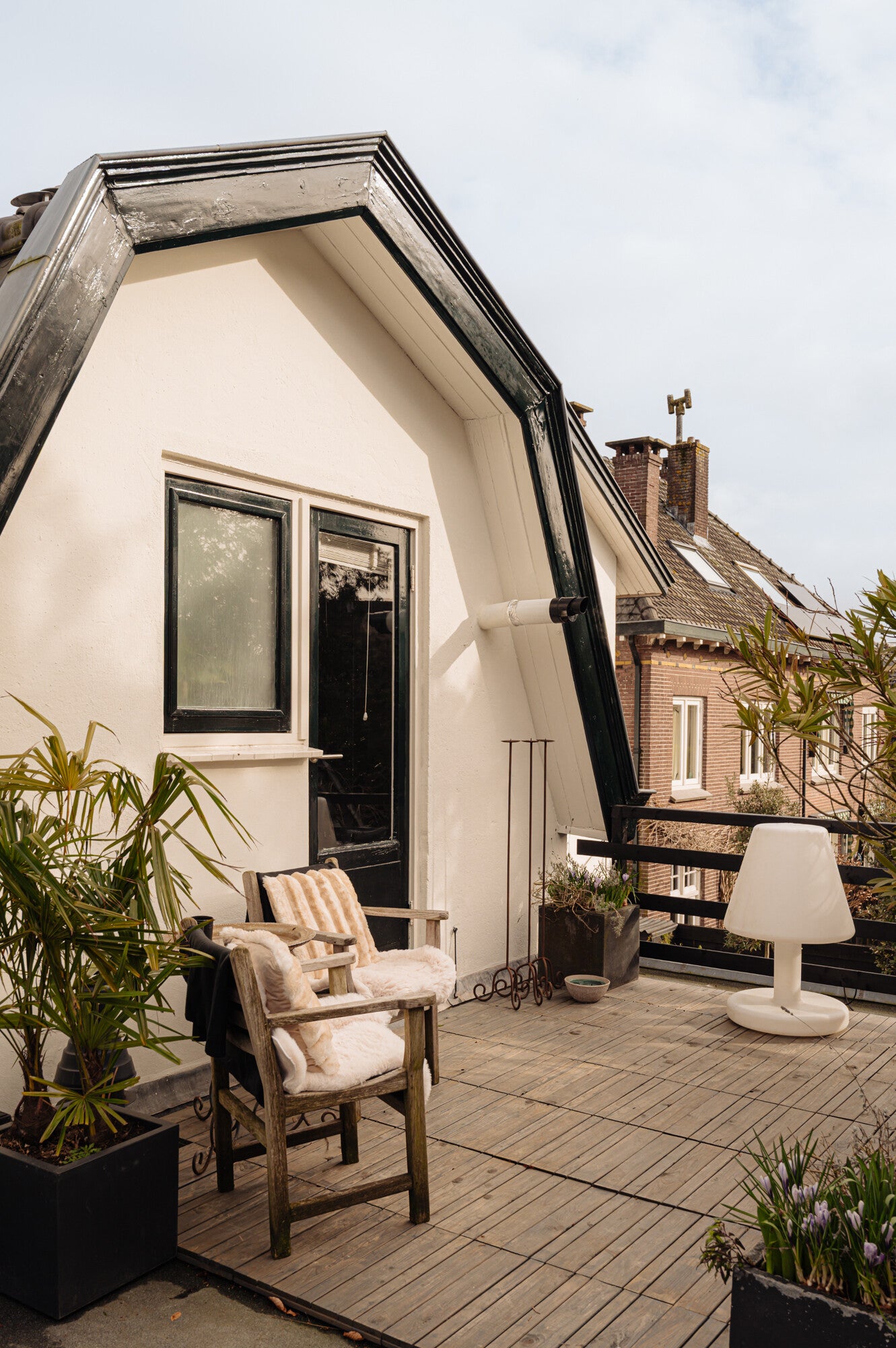 Een absolute verrassing is het zonnige dakterras op het platte dak. Dankzij de gunstige ligging geniet u ook hier tot in de avond van de zon. Het terras is bereikbaar vanuit de badkamer én via een trap vanuit de tuin.